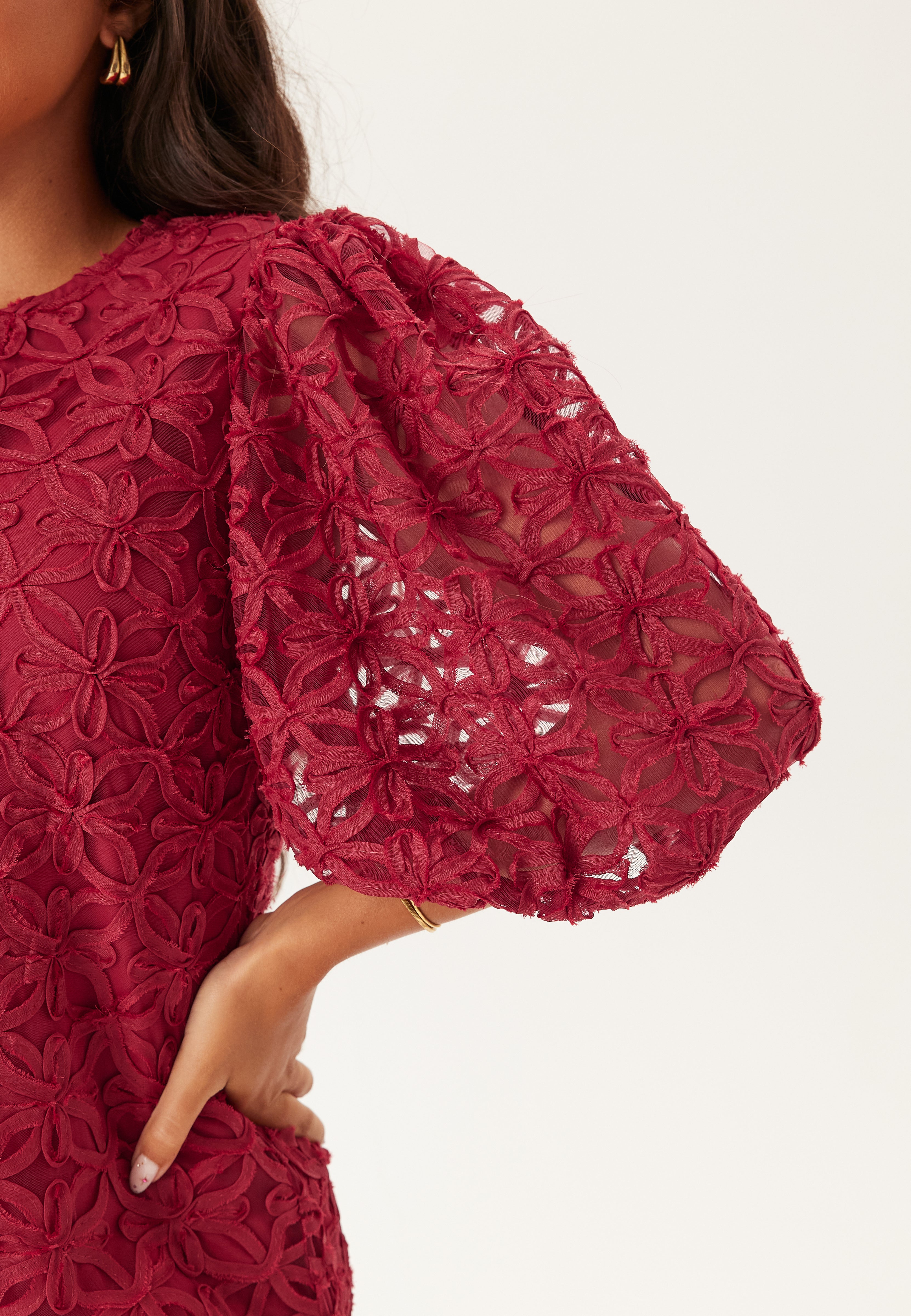 - Seethrough material. Decorated with 3D flowers