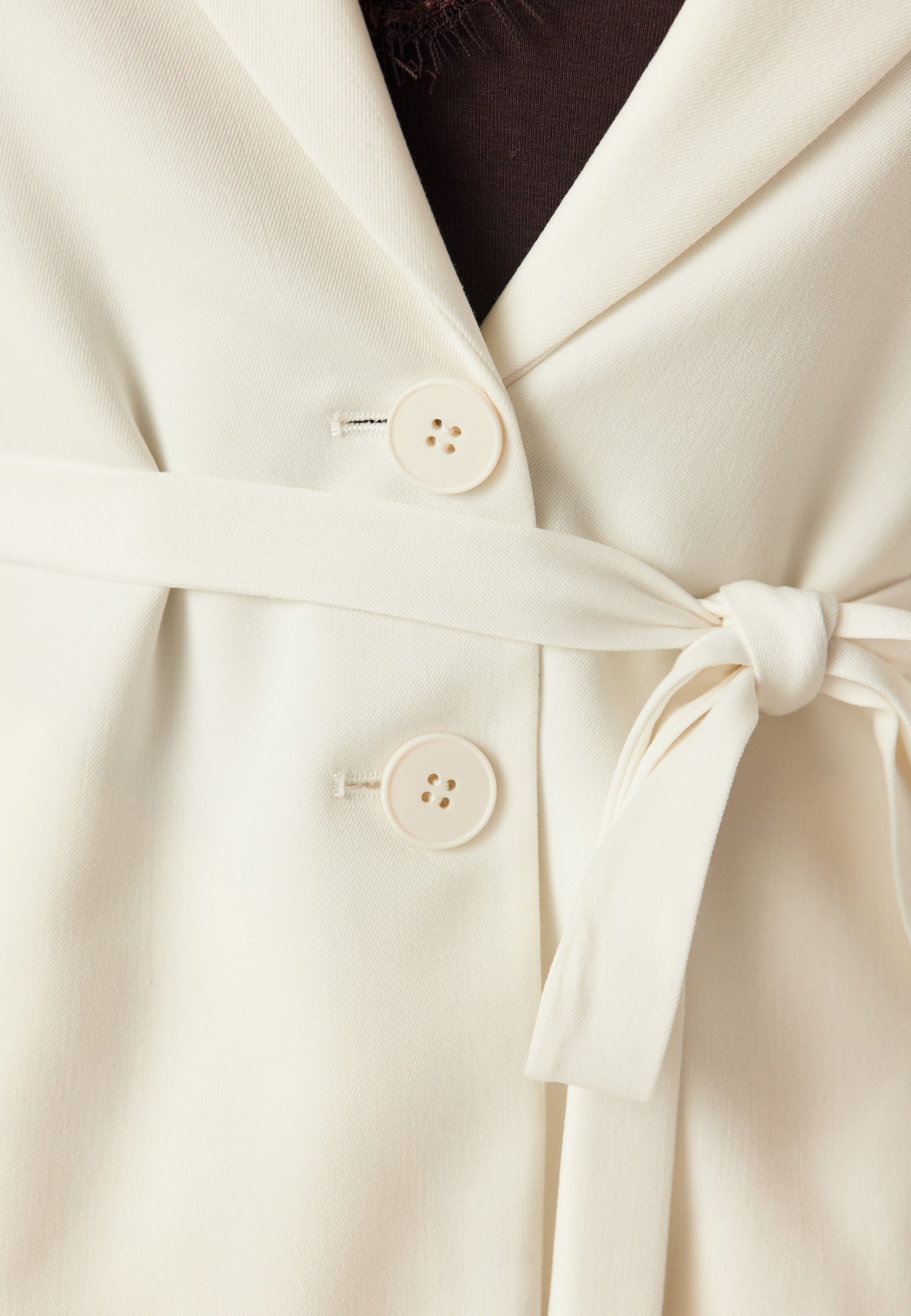 - Defined waist with a removable tie belt