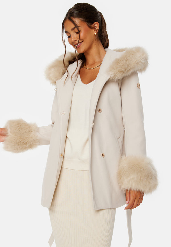 - Hood with removable faux fur