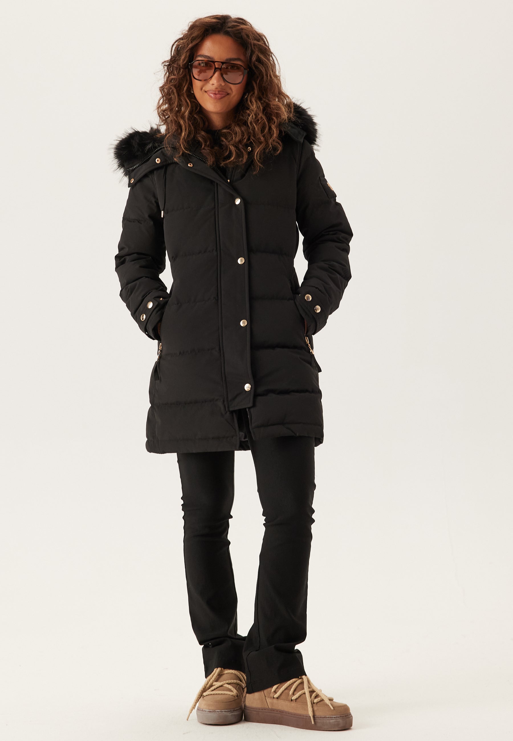 - Detachable faux fur on the hood