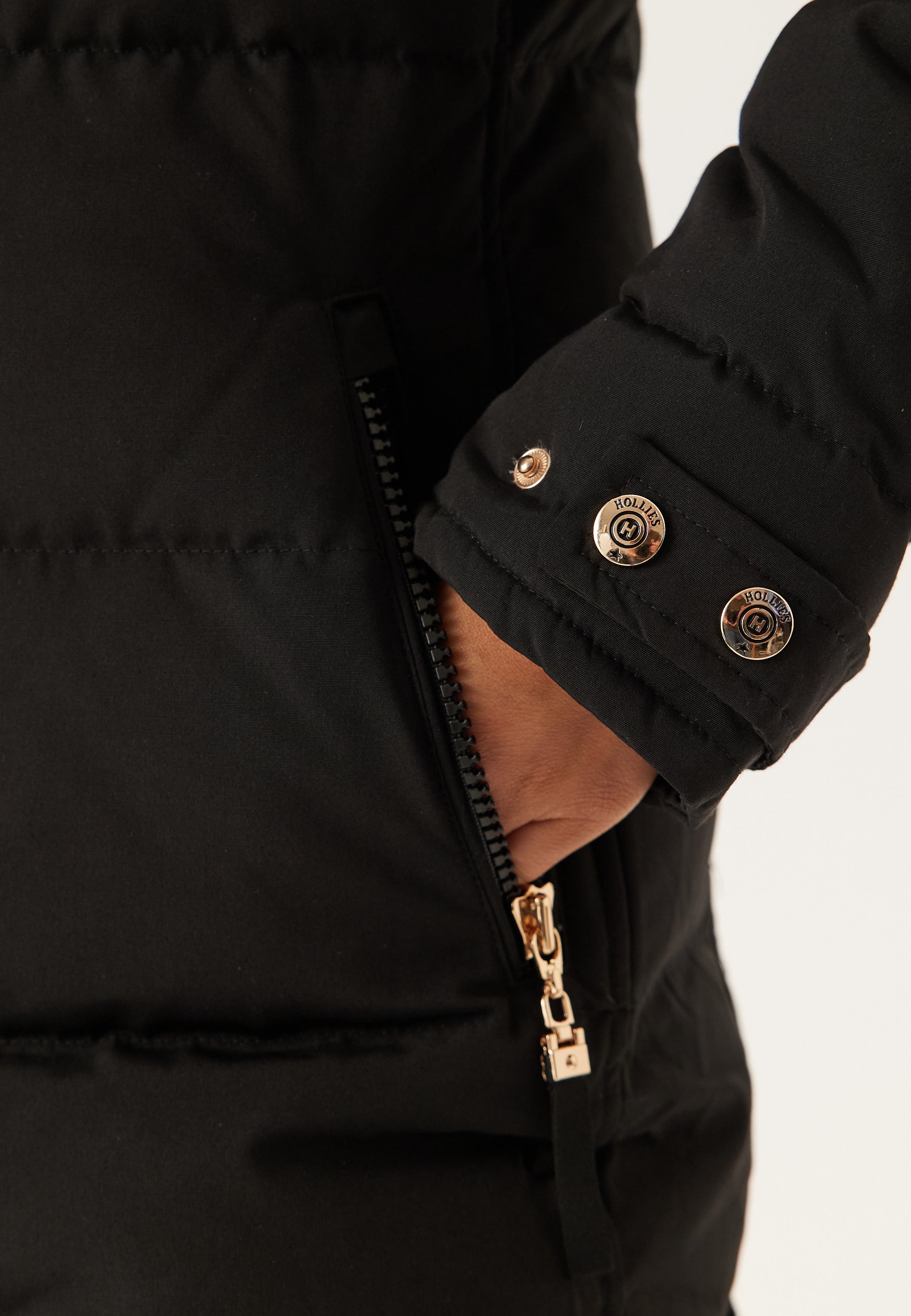 - Two-way zip with snap buttons at the front