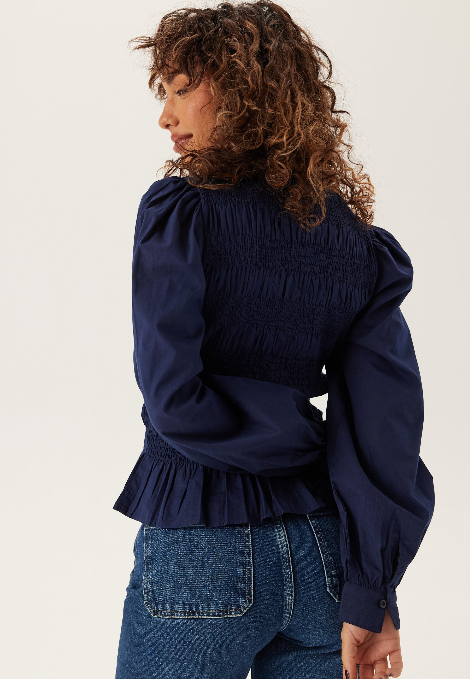 - Puff sleeves with cuffs on the sleeve ends