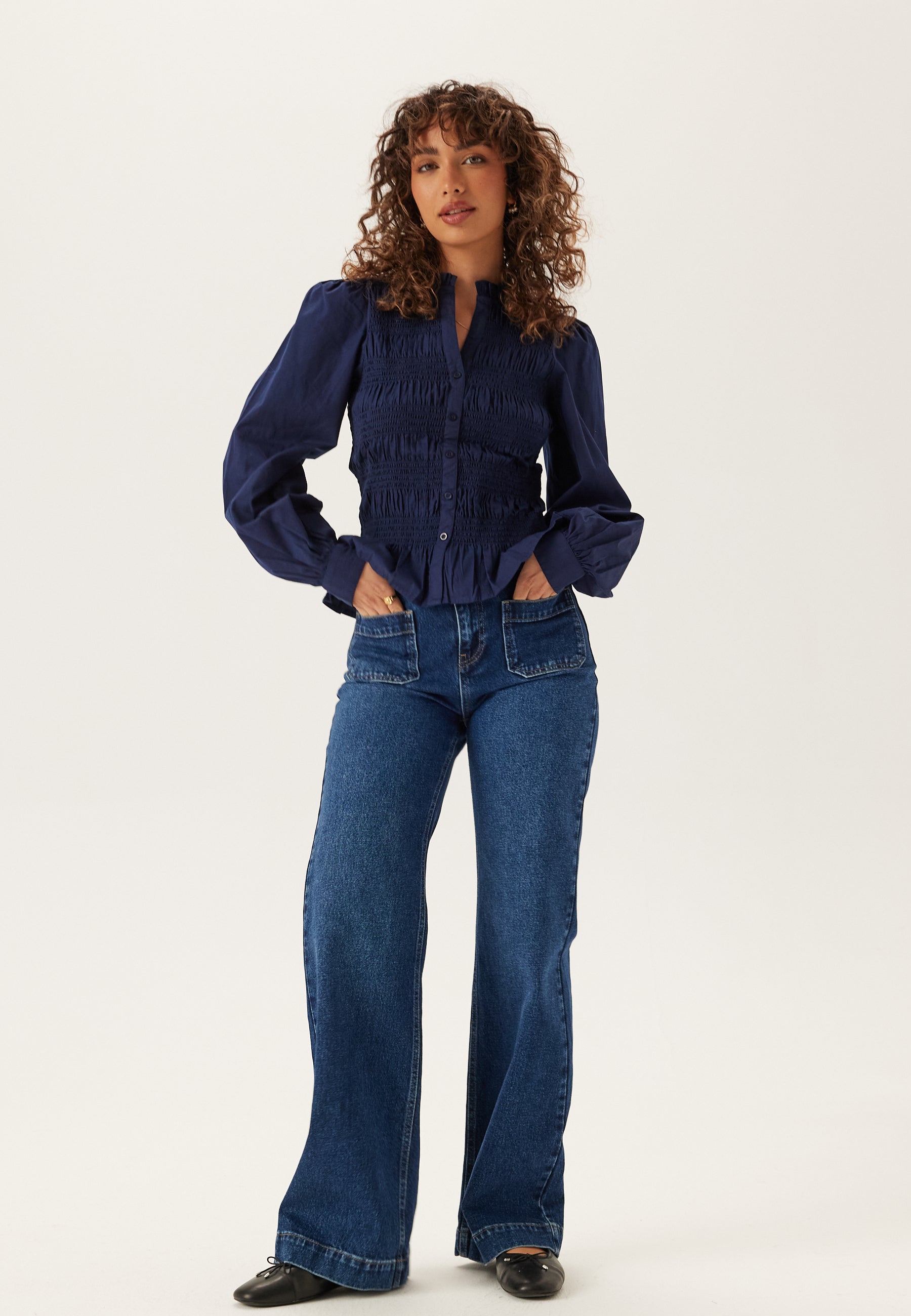 - Woven material with smocking