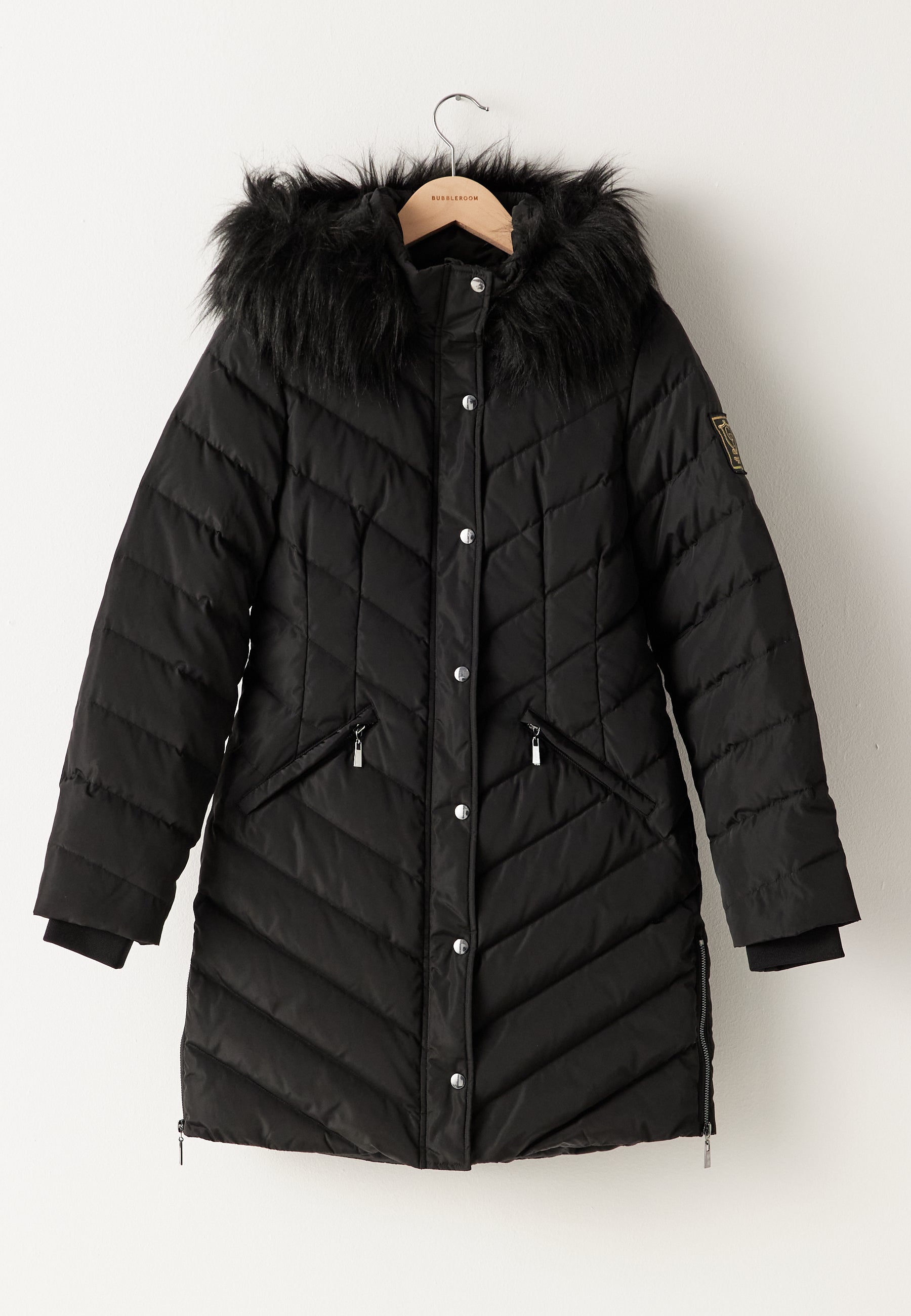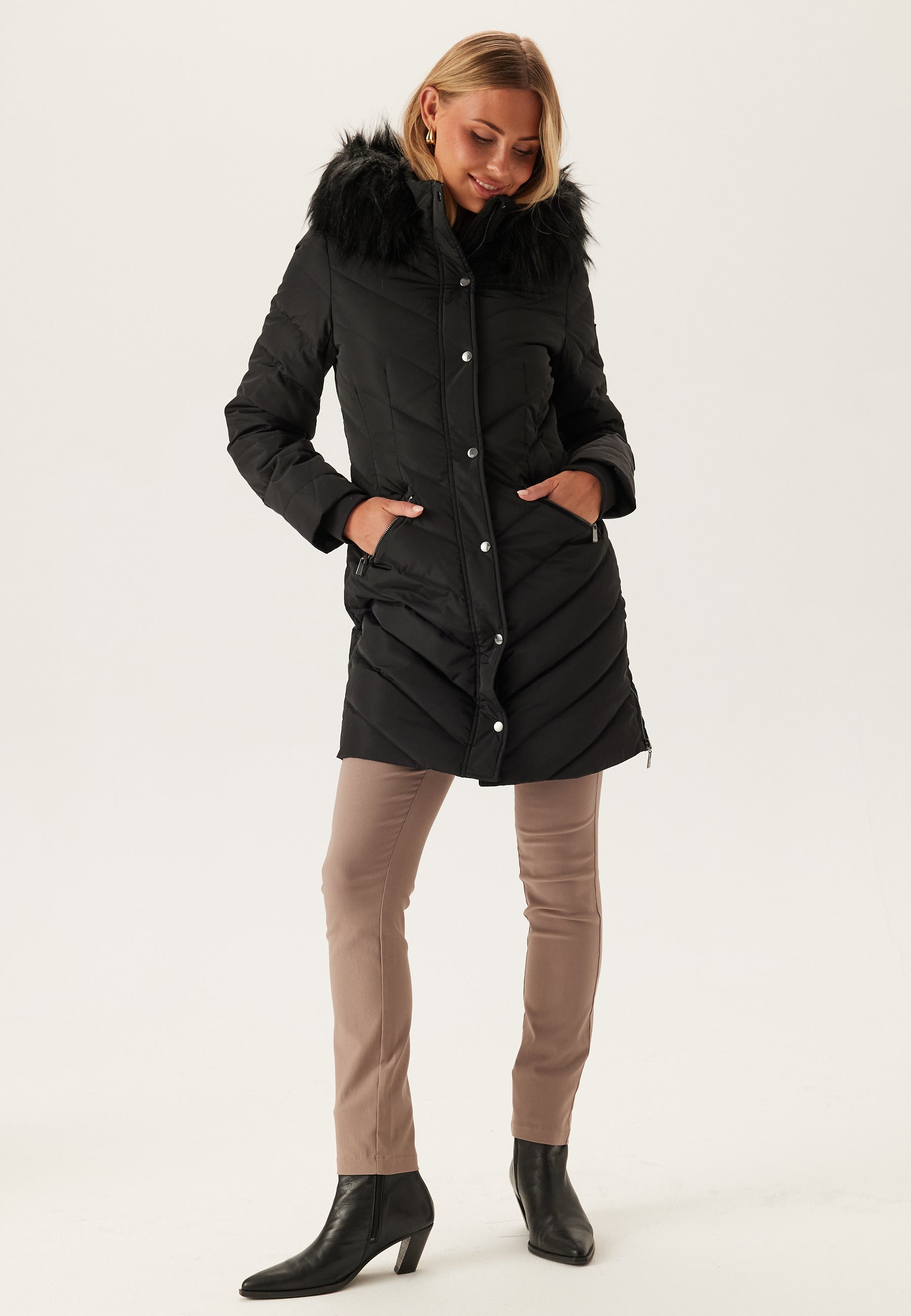 - Hood with a detachable faux fur