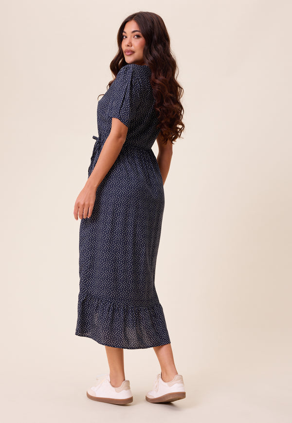 Evie Puff Sleeve Midi Wrap Dress