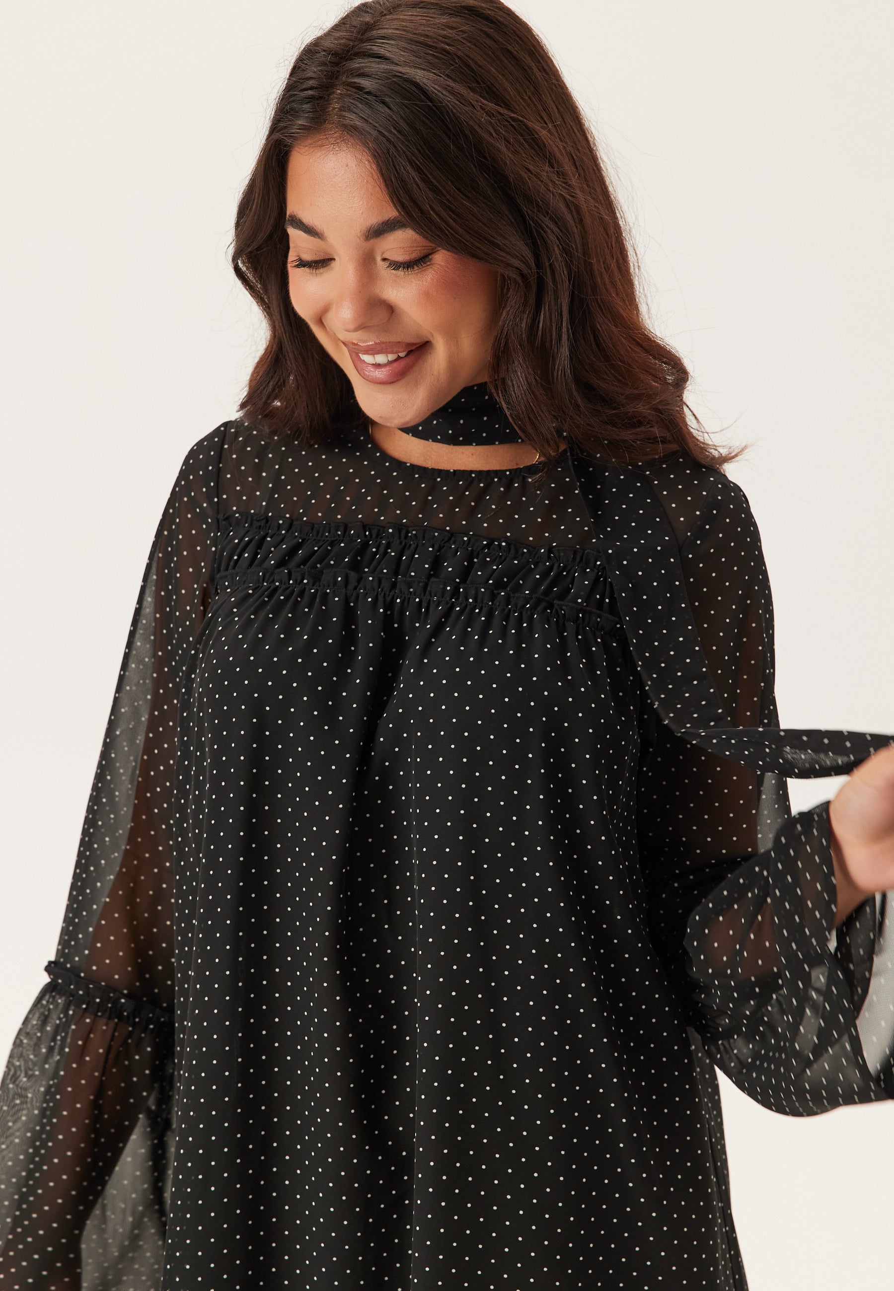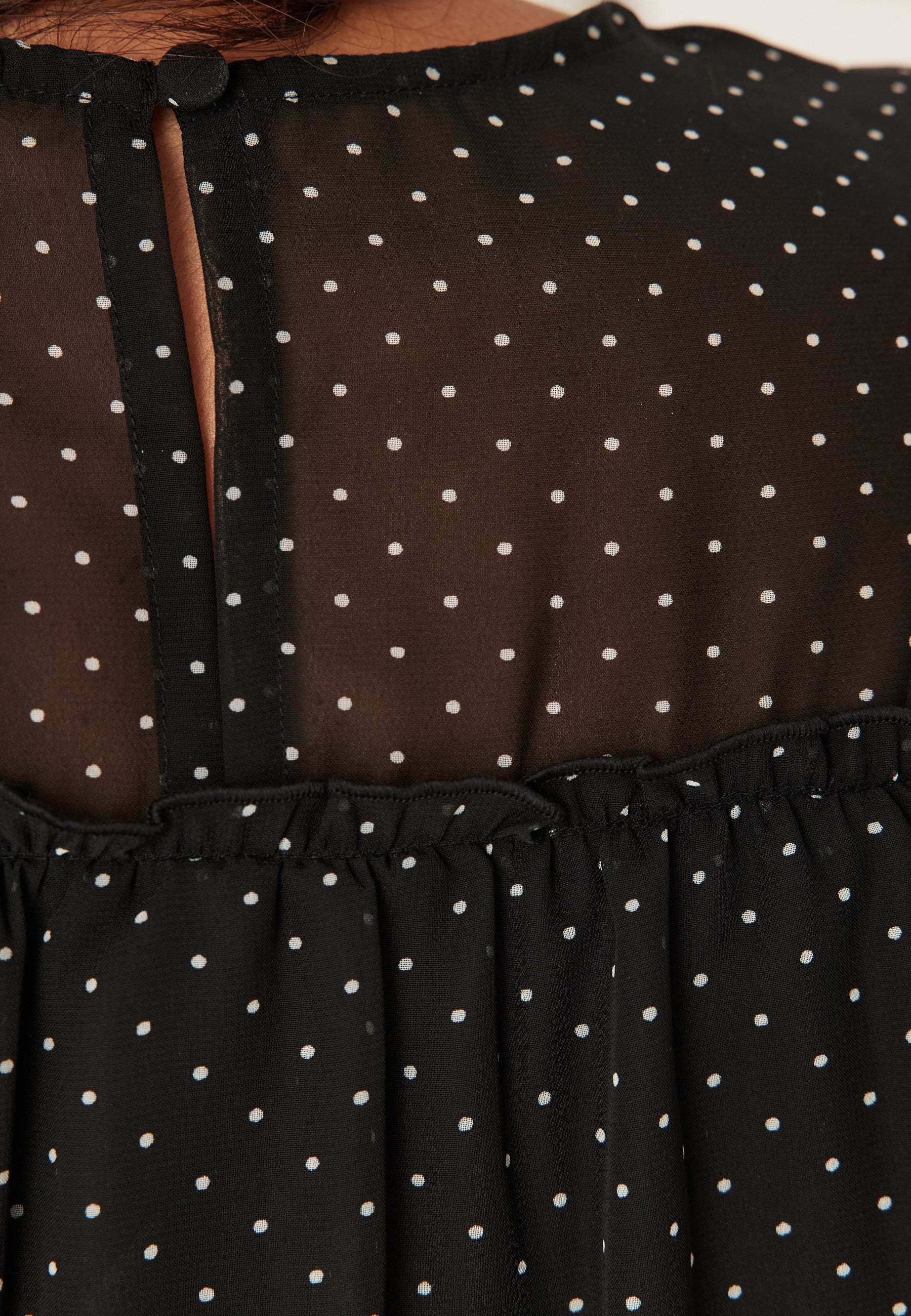 - Frill details at the front, at the back and on the sleeves
